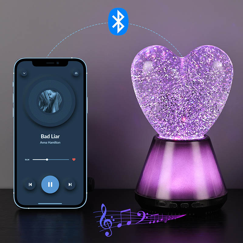 Bluetooth imperium ducitur fulgens cor noctis lumen, quod consilium cor informum componit, Bluetooth musicam playback, tuta ac certa materia plastica, liquida micans fluit, colorque transformatio, peculiare donum pueris destinatum est. Non solum nox practica lucis est, sed etiam ars magica, quae pueris permittit ut una nocte pulchris una nocte post aliam in calidis lucendis et mirabili musica fruantur.