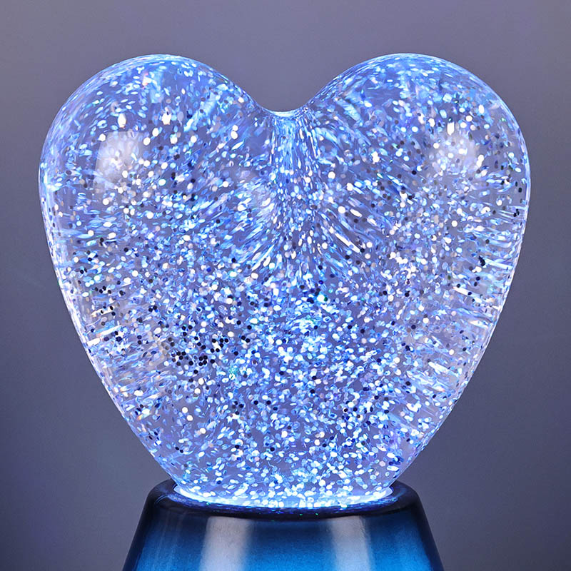 Interior caeruleo moderamine ducitur micans, Cordis nocturnum lumen arcano repletur liquore, In quo micans innumeris sequins fluitant. Cum in lucernam versatur, liquor paulatim in globulum vitreum cor informatum influet, effectus somniorum efficiens. Hae sequins videntur quasi stellae dispersae, sensim in liquido volitare, dans sensum entis in caelo sidereo. Sive dies, sive nox est, cum cordis umbra mirum et gaudium infantibus afferre potest, permittens phantasiam suam in lucendo SOMNICULO evellere.
