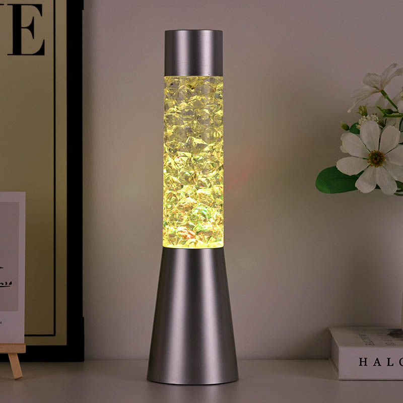 Color Mutans Liquid Glitter Noctis Lucis Cum Ice Sicut formata notae nitidissimae et modernae designantur cum basi metallica et sectione superior pellucida referta fragmentis coloratis, crystallinis. Basis lampadis designata est stabilis et elegans, complens omnem domum stili decoris. Sectio perspicua domos colorum frusta quae leniter movent, effectum visivae peritiationis efficiunt. Lucerna praesto est in tribus variationibus colorum diversorum - rubicundi, caerulei et viridis - sino te colorem perfectum eligere qui decori interiori tuo congruit.
