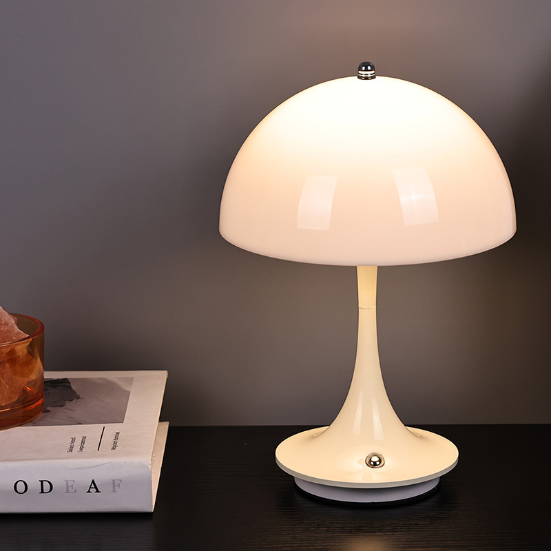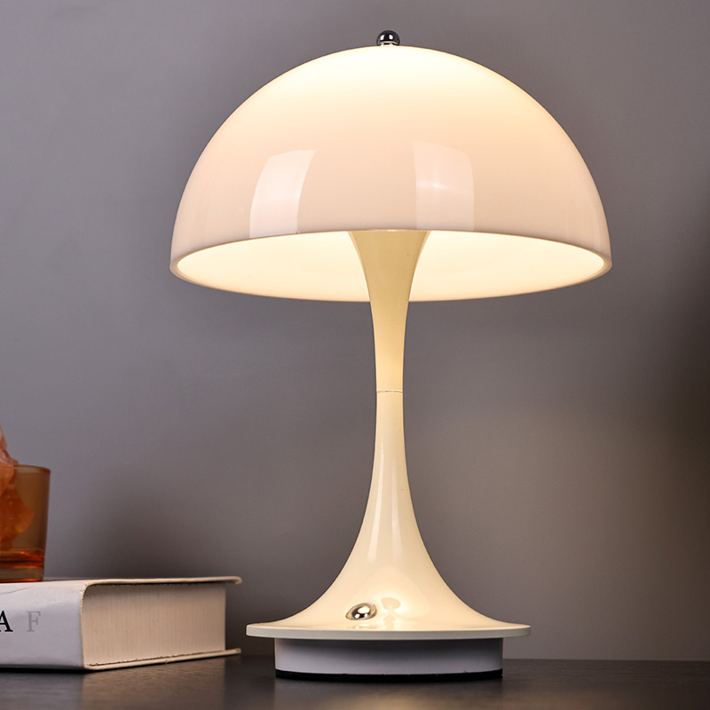 Cute Lucernae domum ductae Cum Fungorum Umbra habet postes metallicum basim et lucernam metallicam, una cum lampshade plastica. Lucernae superficies cerata et levis, tactu valde bono, boleti similis