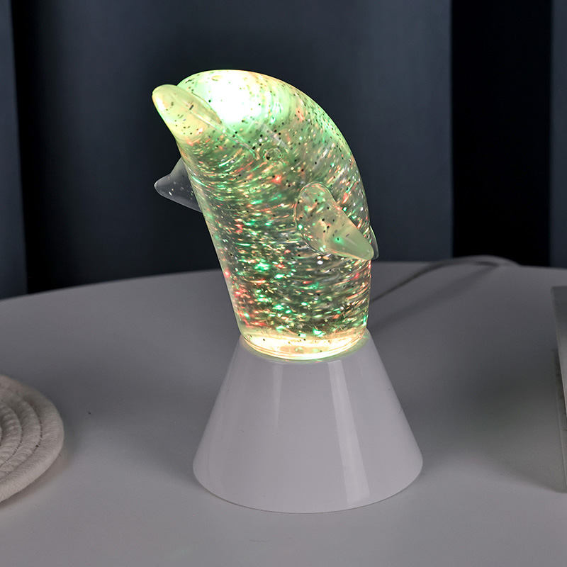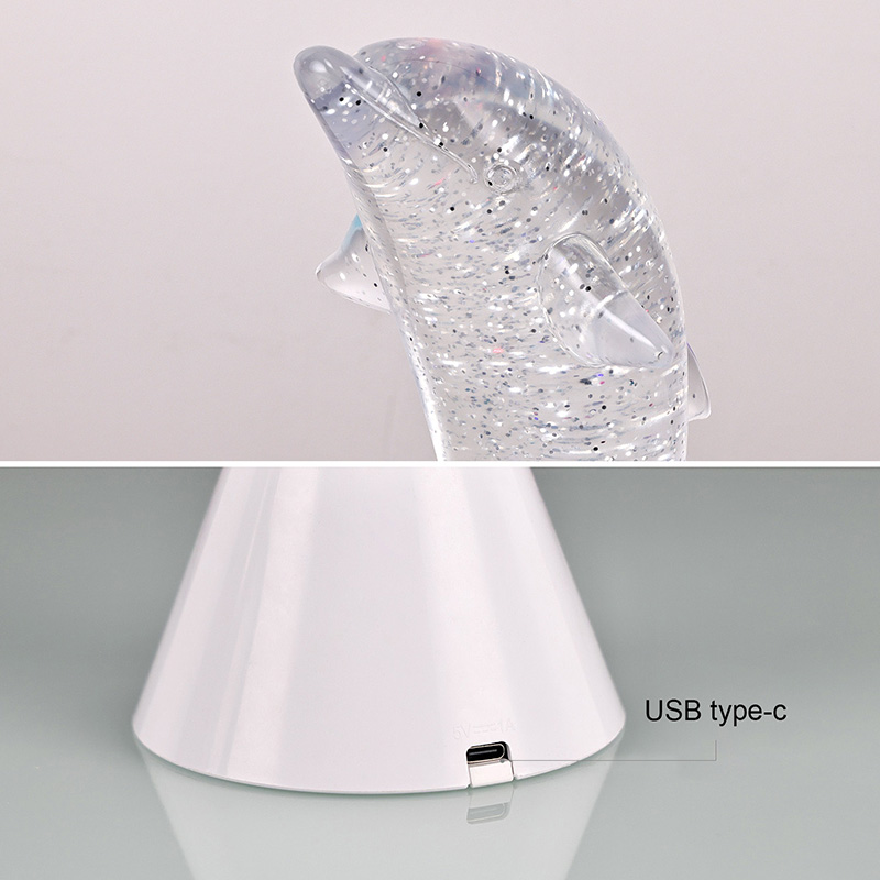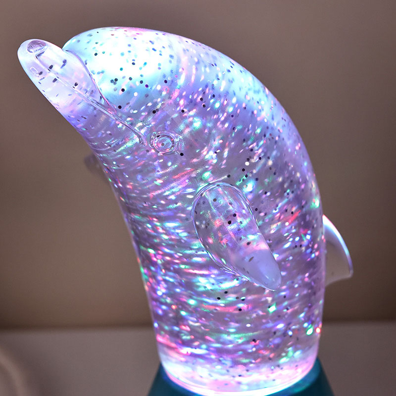 Delphinus Kid Gift Glitter RGB Nigh Lumen in modum delphini bellus, lineis laevibus et singularibus exquisitis perfecte restituens delphinorum positionem agilem. Intus pellucidum delphini putamen, in figura sequins motus irregulares colores pulchre reflectere potest, atmosphaeram tranquillam et arcanam creans. Quotiens hanc lucernam aspicis, sentit sicut te in profundo oceano Inter eas, sentis infinitam suavitatem naturae instructus provectis RGB color mutans technologiam illuminans, permittens te libere inter varios colores commutare. Utrum sit calidum aureum, roseum venereum, an caeruleum serenum;