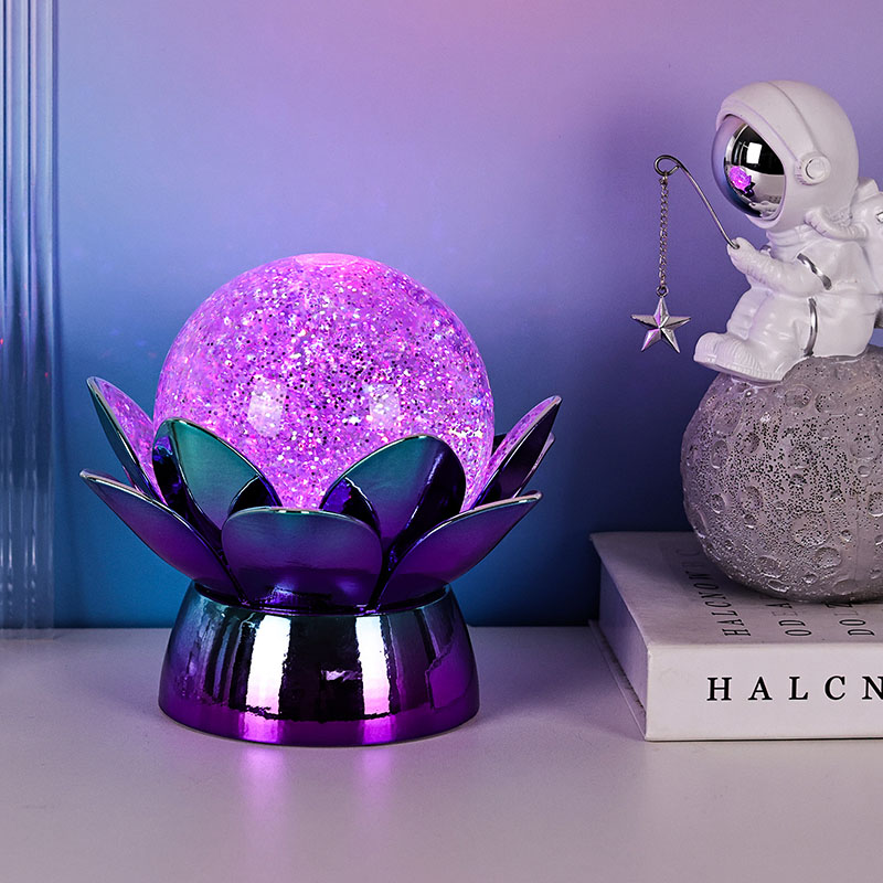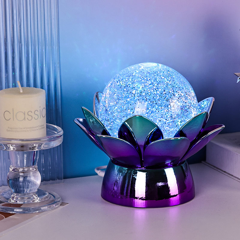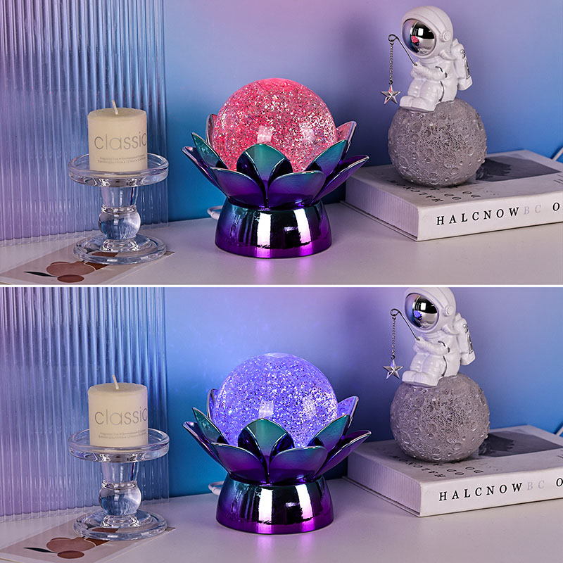 Haec globus cristallus lotus-formatus plusquam lucernae nocturni luminis est — symbolum est puritatis, pacis,
