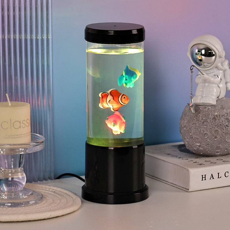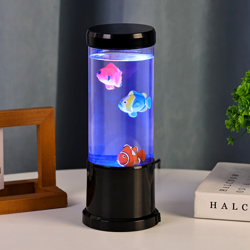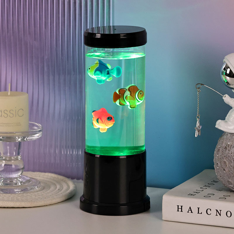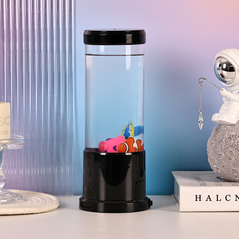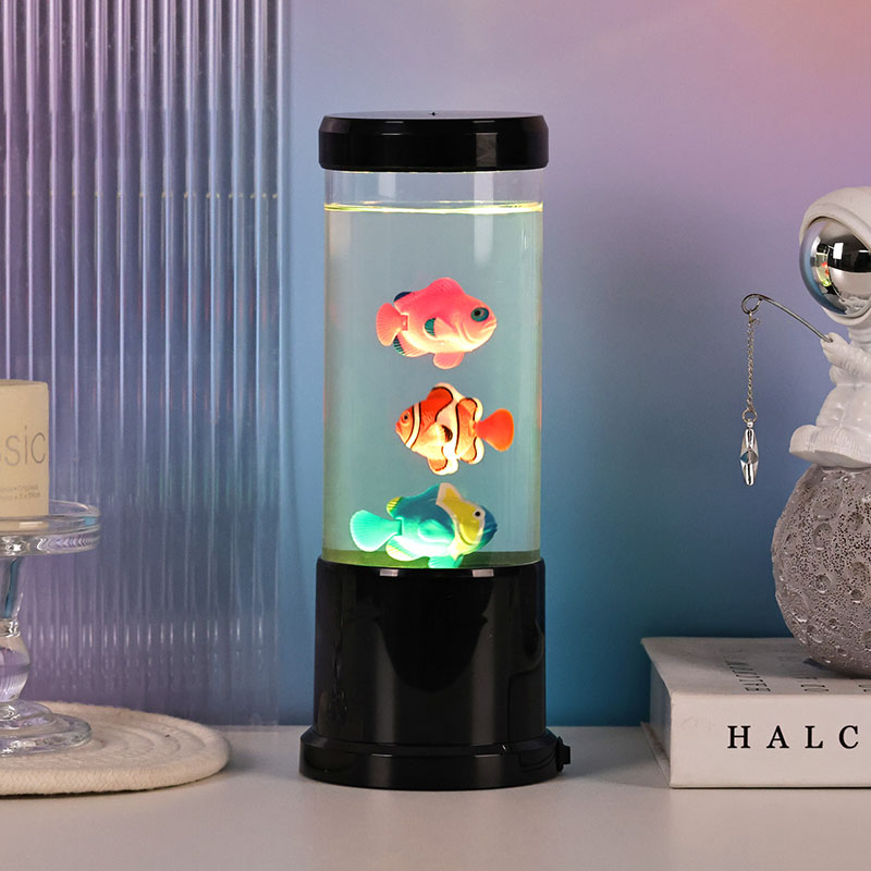 Lucerna Piscium DUXERIT peritiationem inducendo - mixtio attonitus hodierni consilii et leporis aquatilis, qui magicam mundi underwater in domum tuam introducit. Lucerna ornata exteriore nigra, elegans cylindrica et interna captans motu, lucerna haec decorativa plusquam lucet.