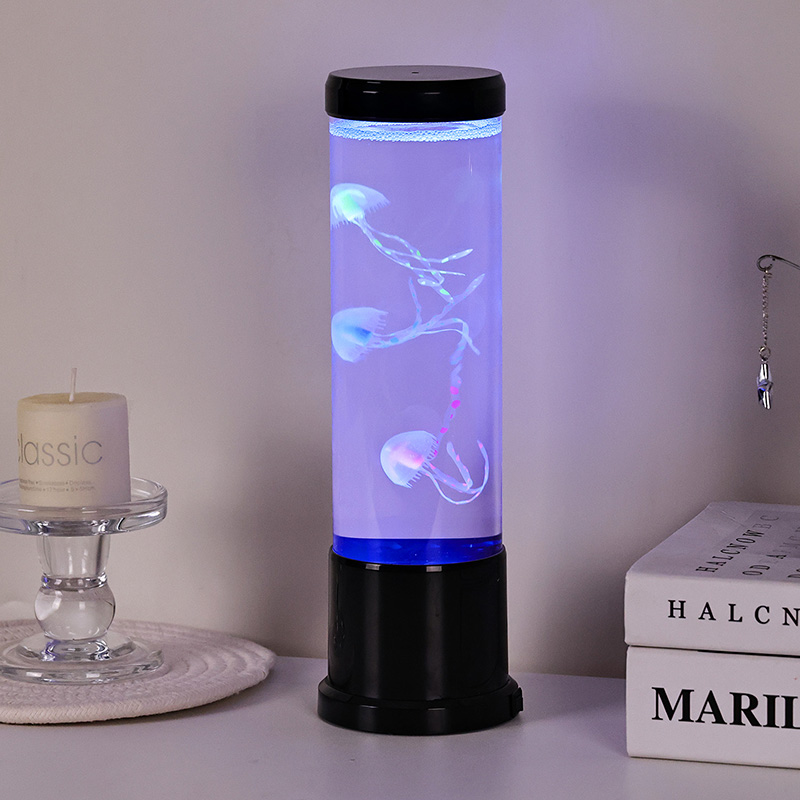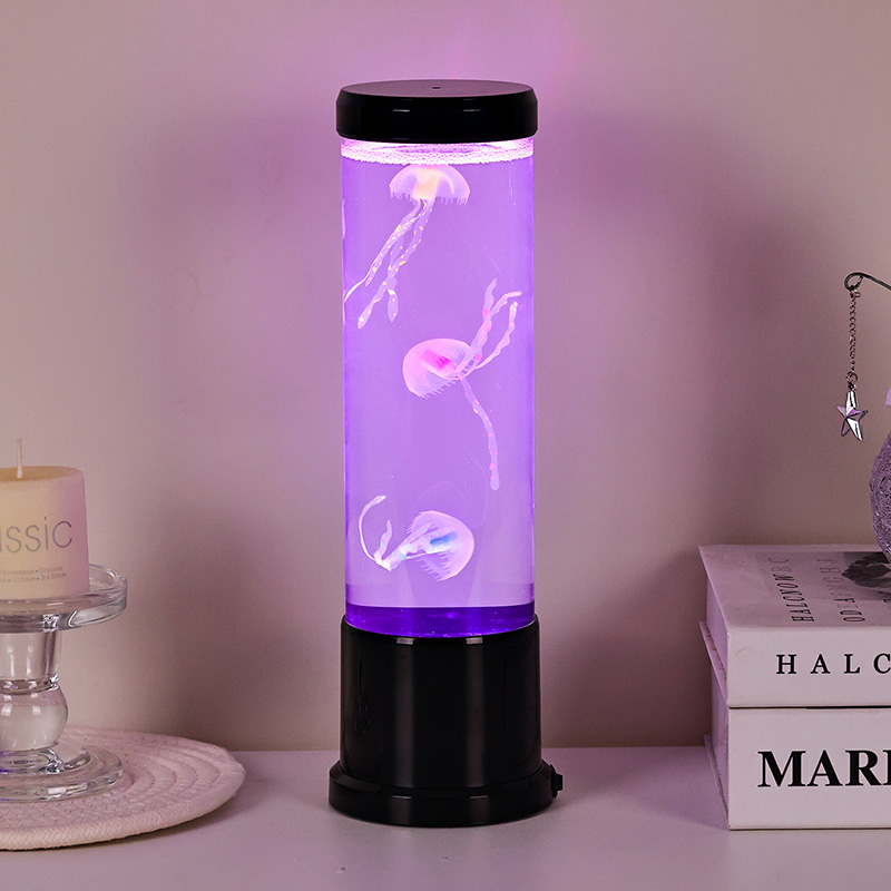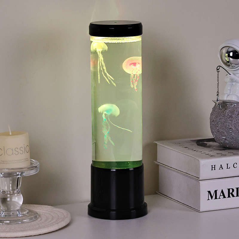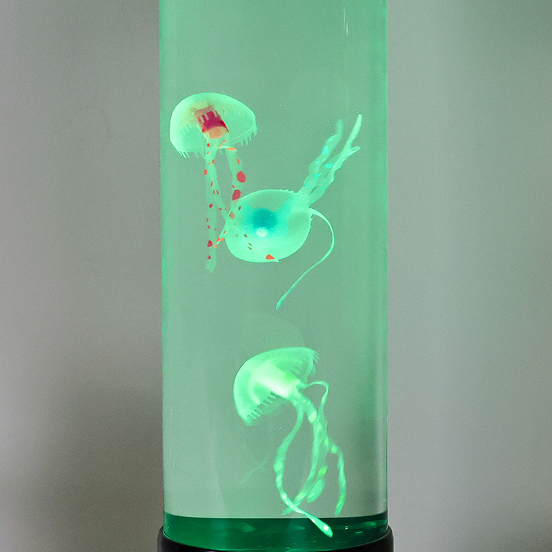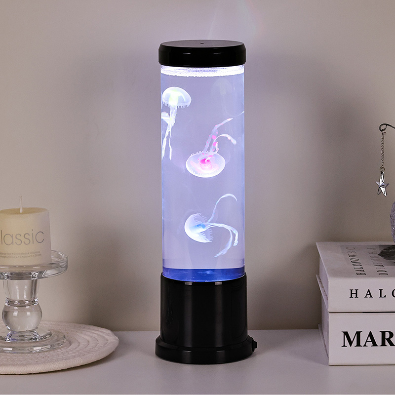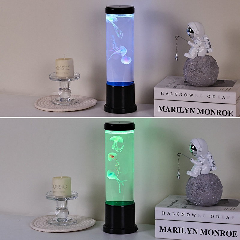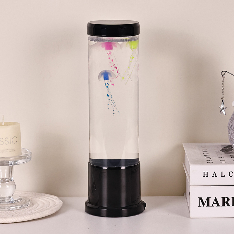 Eleganter Design Meets Nature-Inspired Hight size led jellyfish lamp features a tall, gracili cylindro ficti ab alto-quality, transparent acrylico, qui permittit pro visibili- tate perspicuae venustatis jellyfish intus. In medio liquore molli caeruleo inclusae, tres gelatae vitales sensim innatant et venae, corpora translucentia dynamica, multicoloria ducti lumina illustrata. Lenis rutilat color per spectrum blandiendi colores — ab alto oceani caerulei et purpurei ad mollia rosea et vireta — imitantia bioluminescentiam in gyris realibus profundo maris. Lucernae summitas et basis nitidae plasticae nigrae finiuntur, eam praebentes moderni, minimalist aspectum qui complementum cuiuslibet decoris stili.