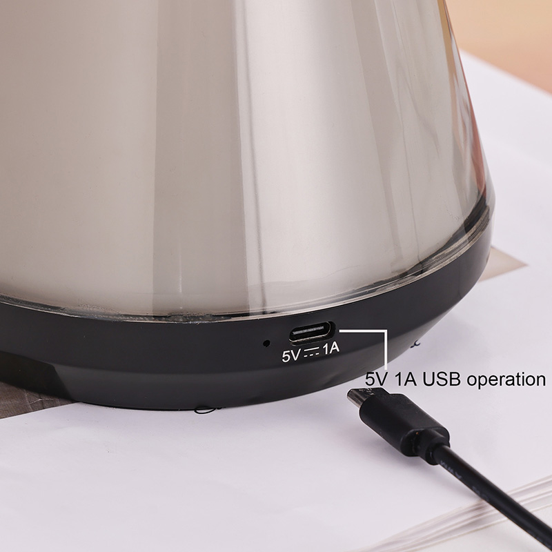 Lampas tacite agit per motorem taciturnum susurri, continuam relaxationem vel somnum praestans. Continet intuitivam tactum moderantem in basi potentiae, modum lectionis coloris (auto-cycli vel stati coloris), claritatem commensurationem, et occasus timoris (typice 1-8 horas). Vestigium eius compactum efficit specimen tabularum, nocturnarum, crustarum, vel etiam sicut centri fragmentum in factione lemmata vel in interiore aquatico-inspirata.