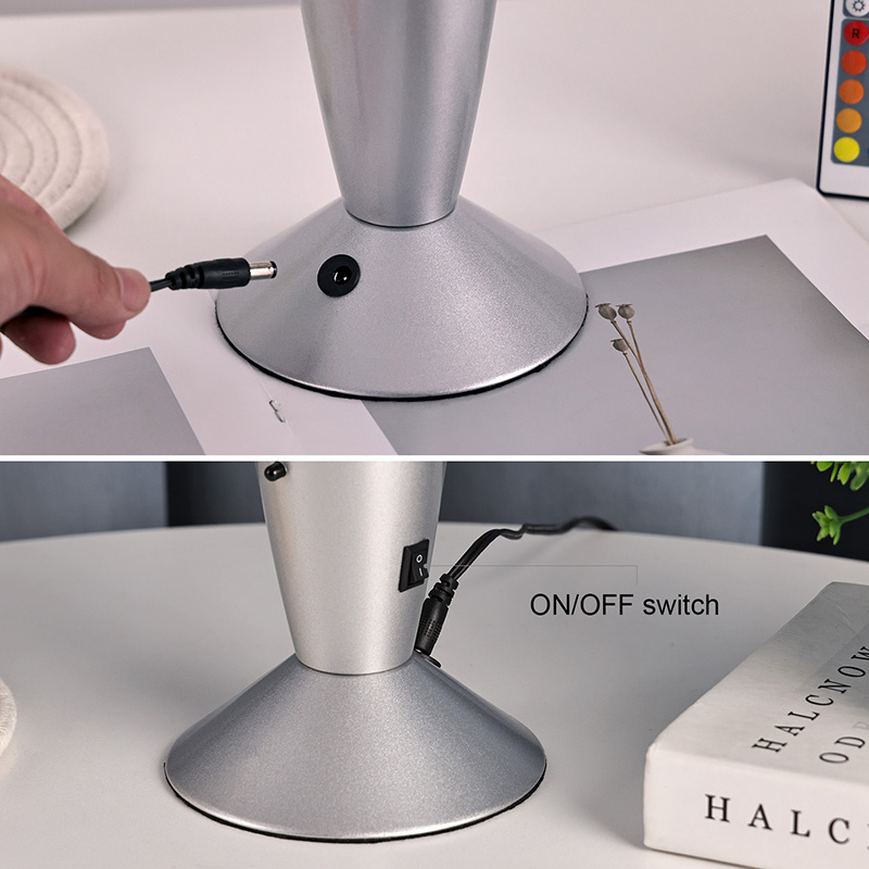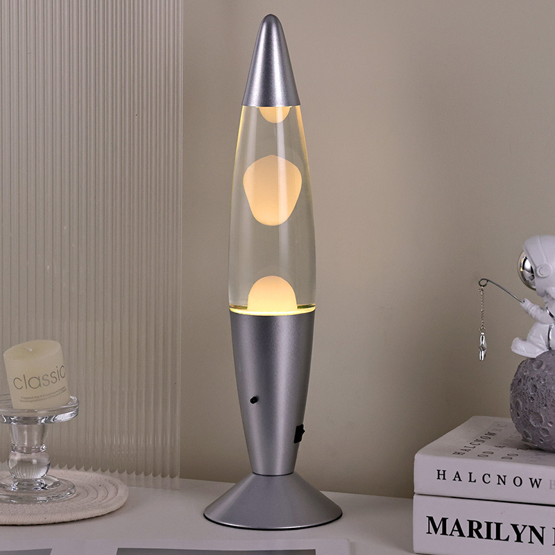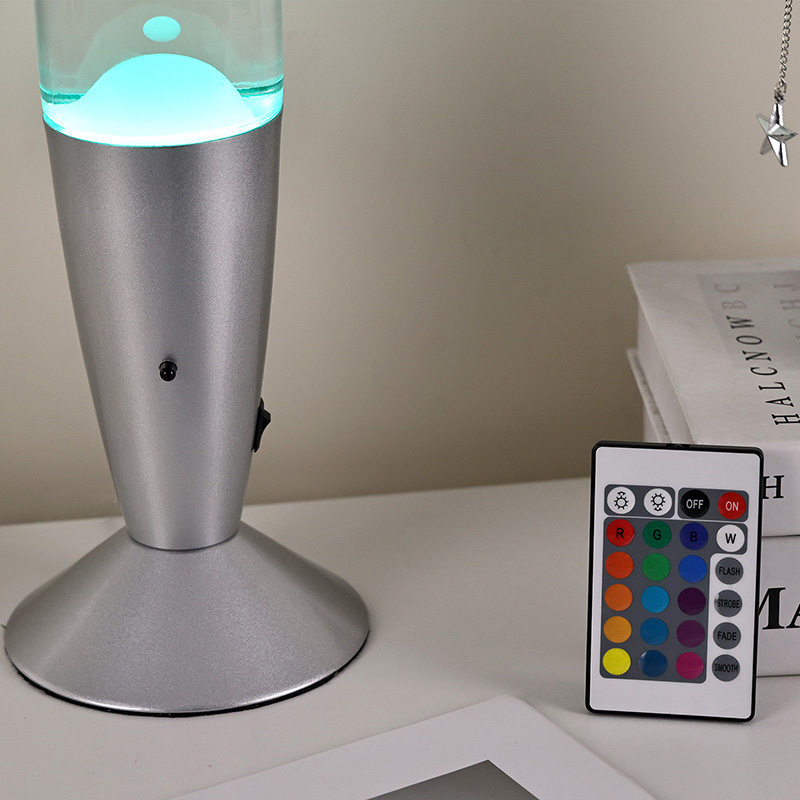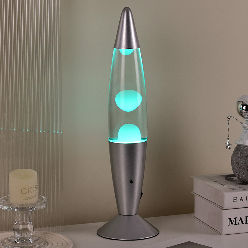 Potentia inferioris switch control 16" lava lucernae lineamenta in classicis indicis glande, cum testa argenteo paribus cum corpore vitreo vitreo, simplex adhuc elegans. Lumina colorata intus transeunt per liquefactionem fluentem.