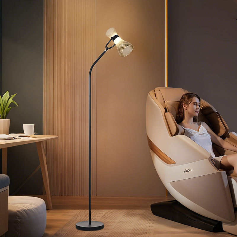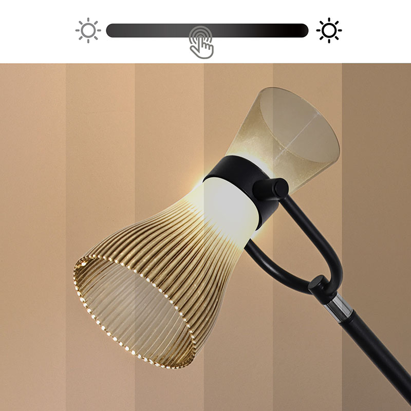 Pede dimming switchArea moderna lucerna ductus cum vitreis umbra conceptum minimalist designat conceptum, simplici adhuc penicillo altiore figura. Altitudo 150 centimetrorum et basis diametri 20 centimetri dat sufficientem praesentiam absque spatio nimium assumpto. Metallum baculum et basi subtiliter politum, superficie leni et subtili;