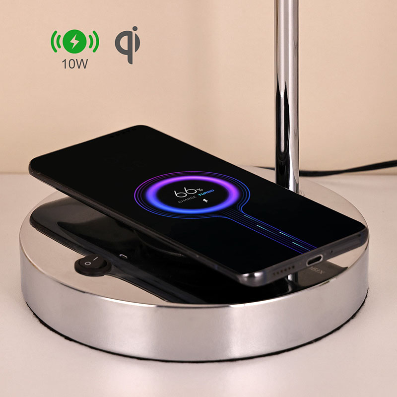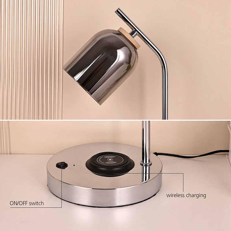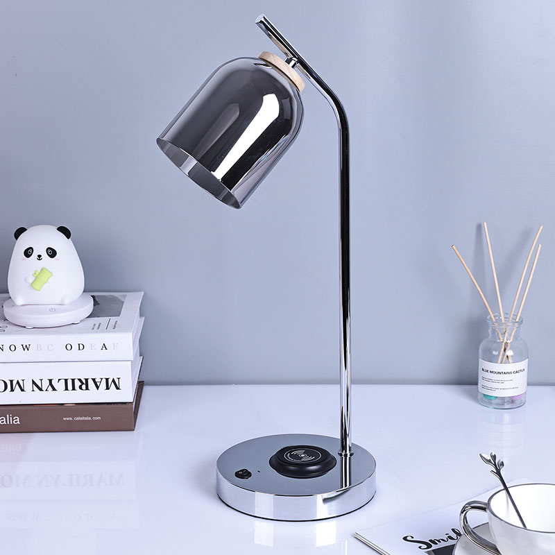 QI lucernae desk ducti cum umbra vitrea habent testimonium wireless QI. 5V1A wireless telephonum patina in basi