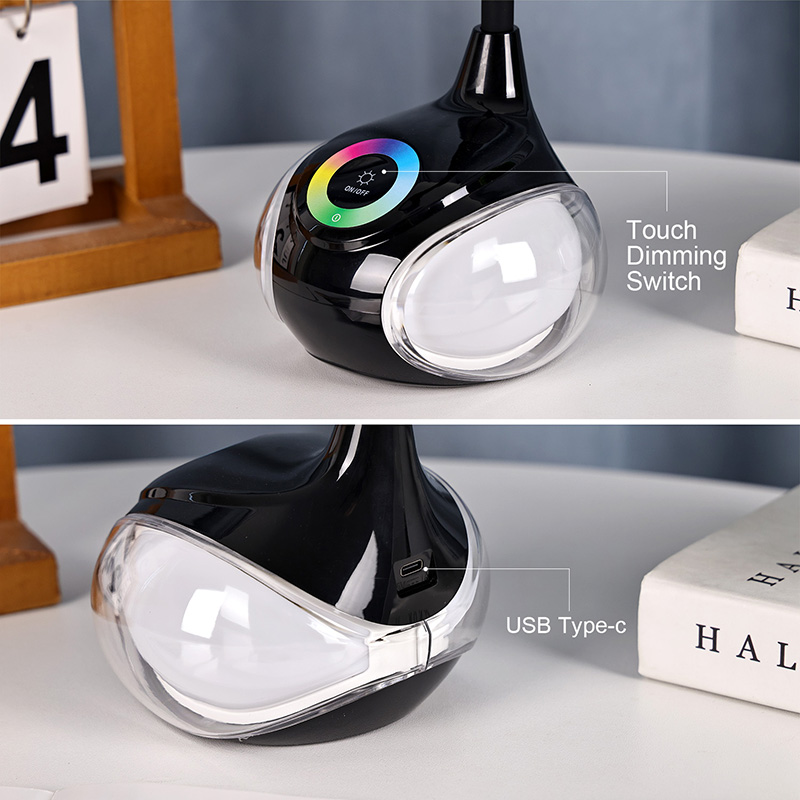 Praeter munus illustrandum, maxima pars lucernae desk est quod duos magnos oculos habet qui colorem in RGB in fundo habere possunt, ad instar damselfly, aptam ad ornatum et otium reddens.