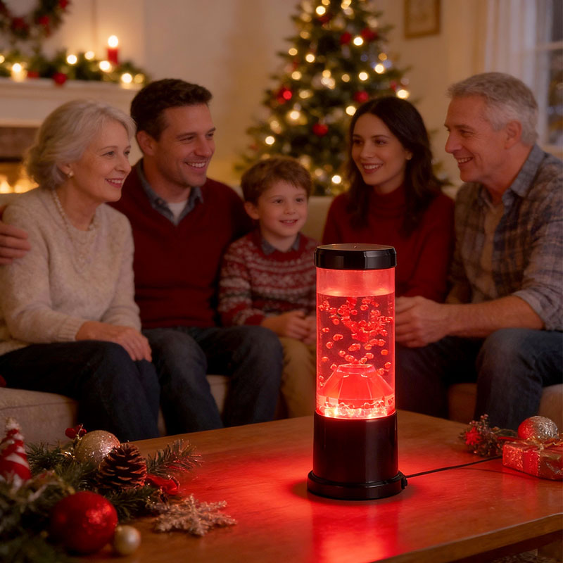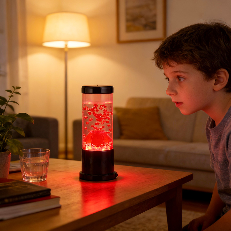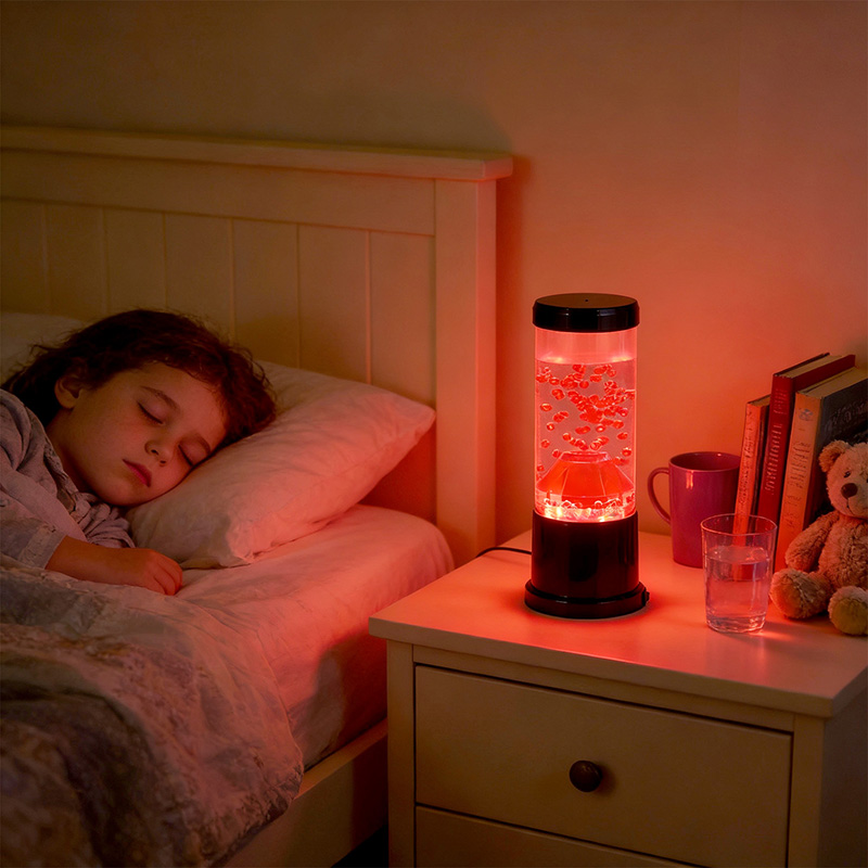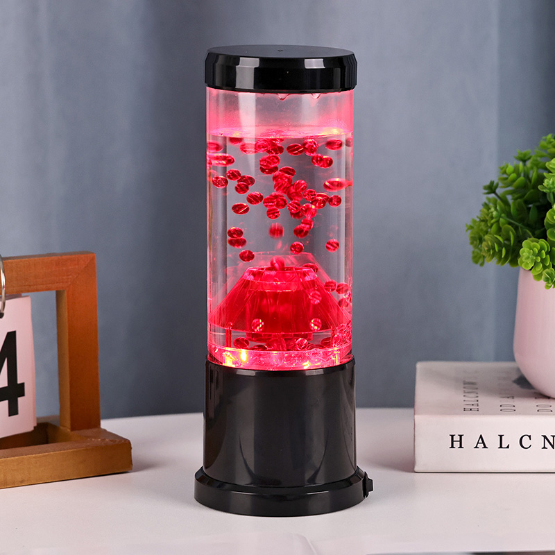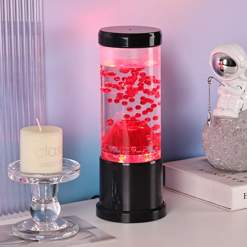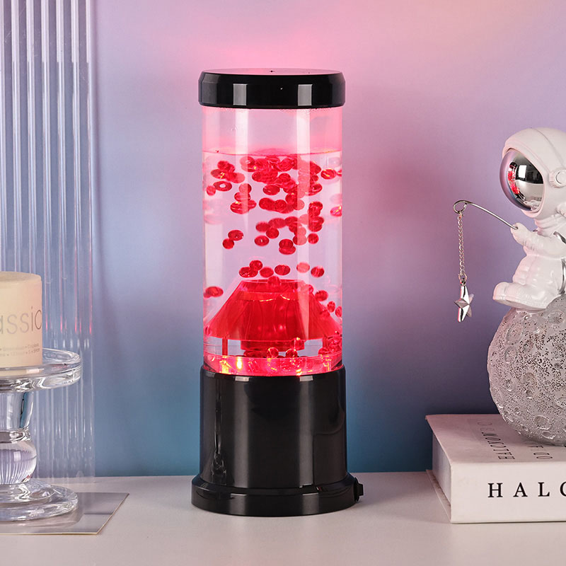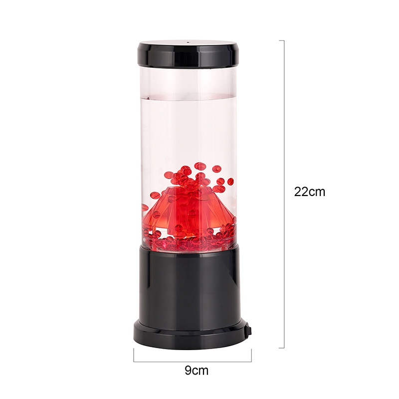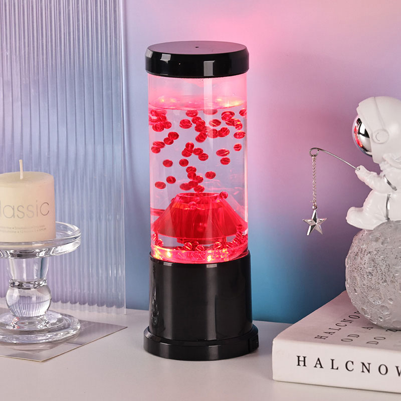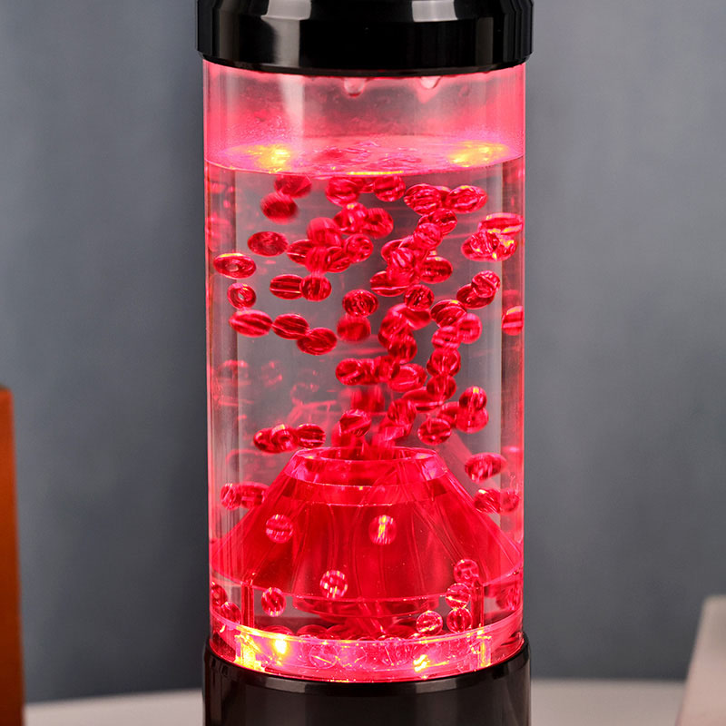 Media pars lucis noctis est columna diaphana quae craterem molarem imitatur. In hac columna invenies vibrantem sphaerarum rubrae ostentationem, reminiscentem lavae fusilis intra crustam terrae fluentem. Hae Sphaerae intra liquidum liquidum eleganter fluitant, effectum visivae dynamicam semperque mutabilem efficientes. Cum lux translucet, calet et invitat meridiem, perfectum ad fovendum atmosphaeram in quovis loco constituendo.