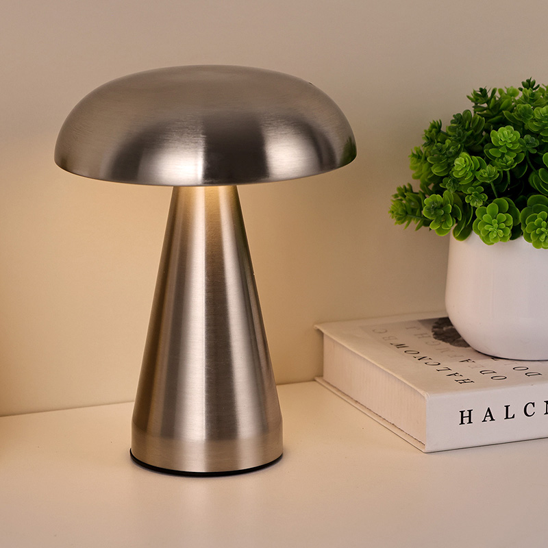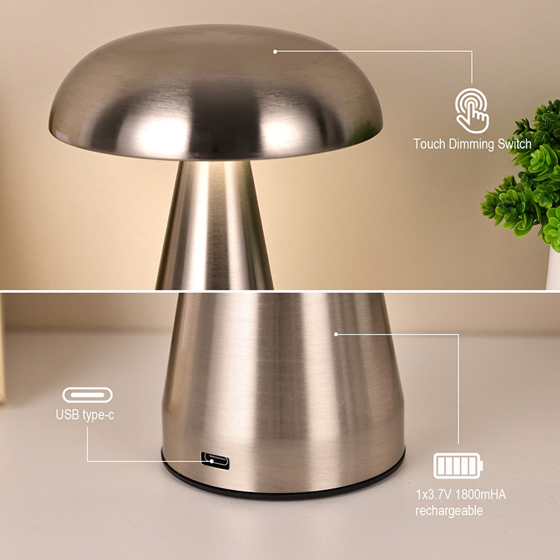 Totum Metal Led Pluteum Lucerna Cum Fungorum umbra habere USB type-c rechargable sub basi potest recharge 1800ma altilium intus